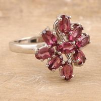Handmade Garnet and Sterling Silver Cocktail Ring 'Unfurling Flower' Item ID: 2669924855