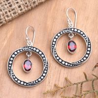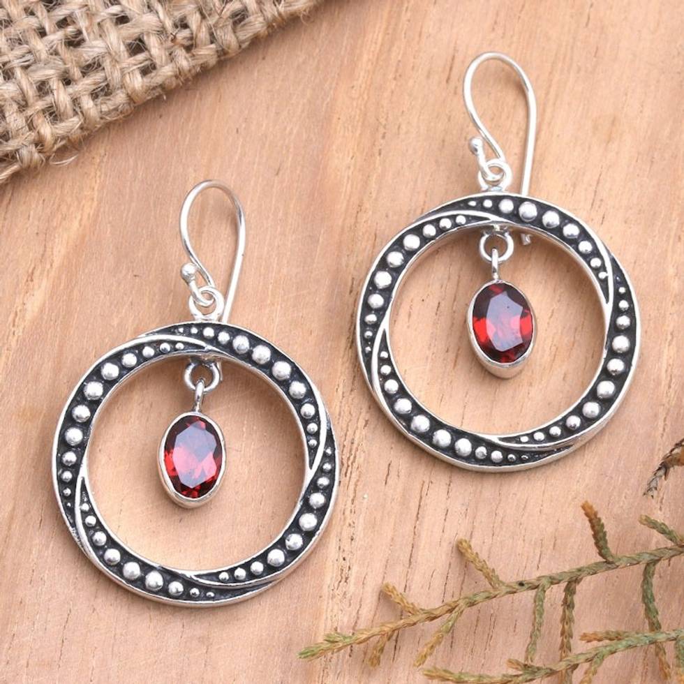 Handmade Garnet and Sterling Silver Dangle Earrings 'Around the Sun' Item ID: 2671747641