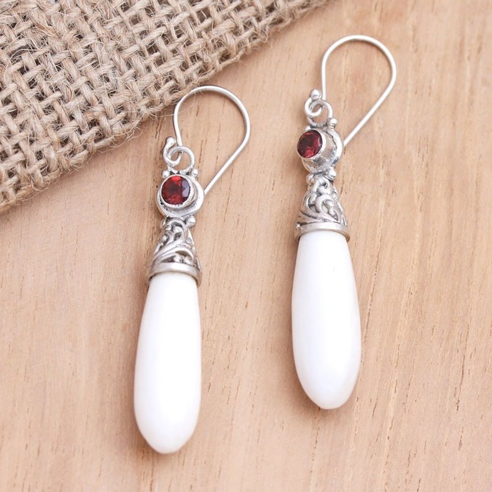Handmade Garnet and Sterling Silver Dangle Earrings 'Balinese Sling' Item ID: 2671574603