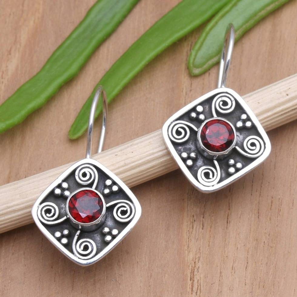 Handmade Garnet and Sterling Silver Drop Earrings 'Odyssey's Edge in Red' Item ID: 2671746806