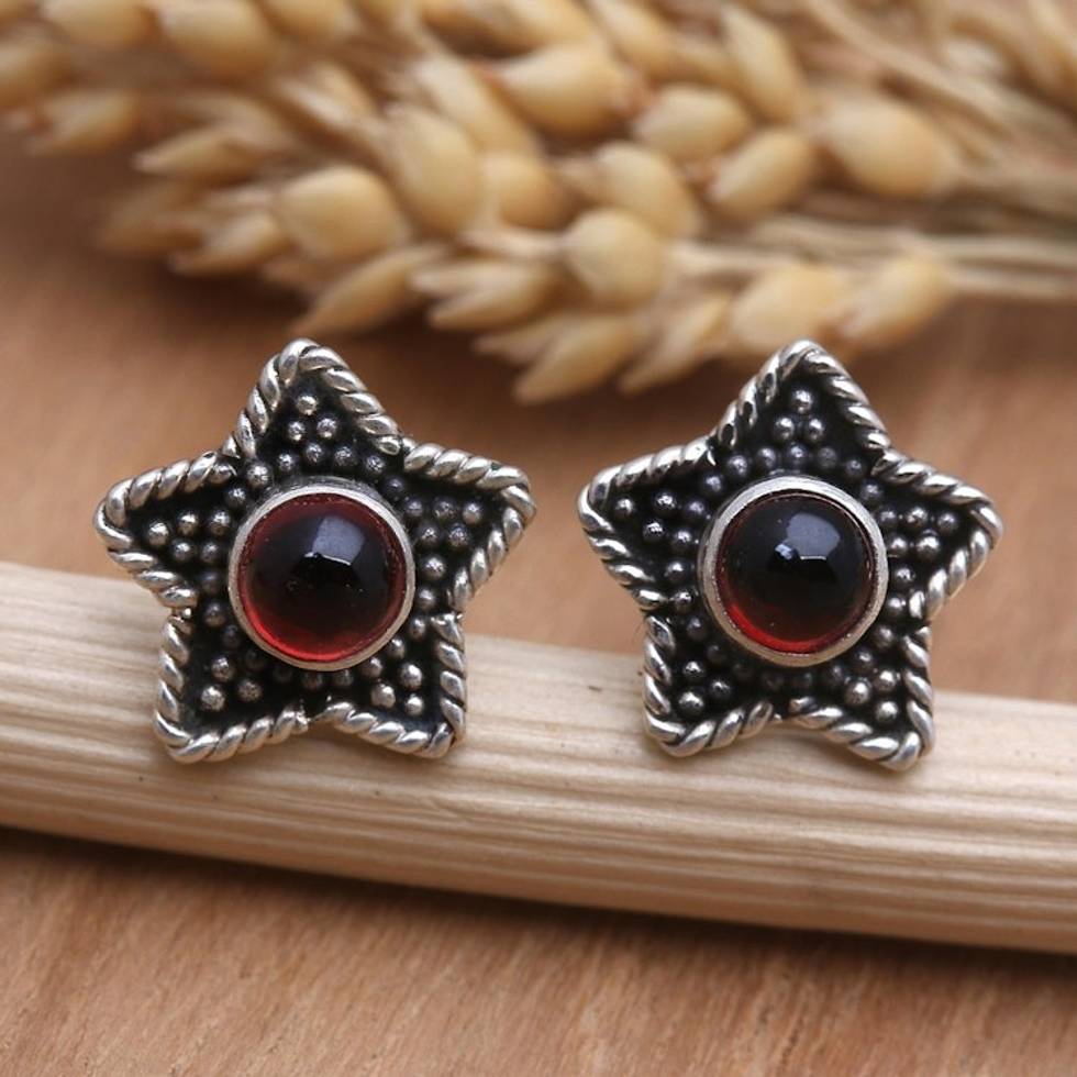Handmade Garnet Stud Earrings with Star Motif 'Crimson Star' Item ID: 2671671406