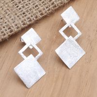 Handmade Geometric Sterling Silver Drop Earrings 'Open Window' Item ID: 2671745398