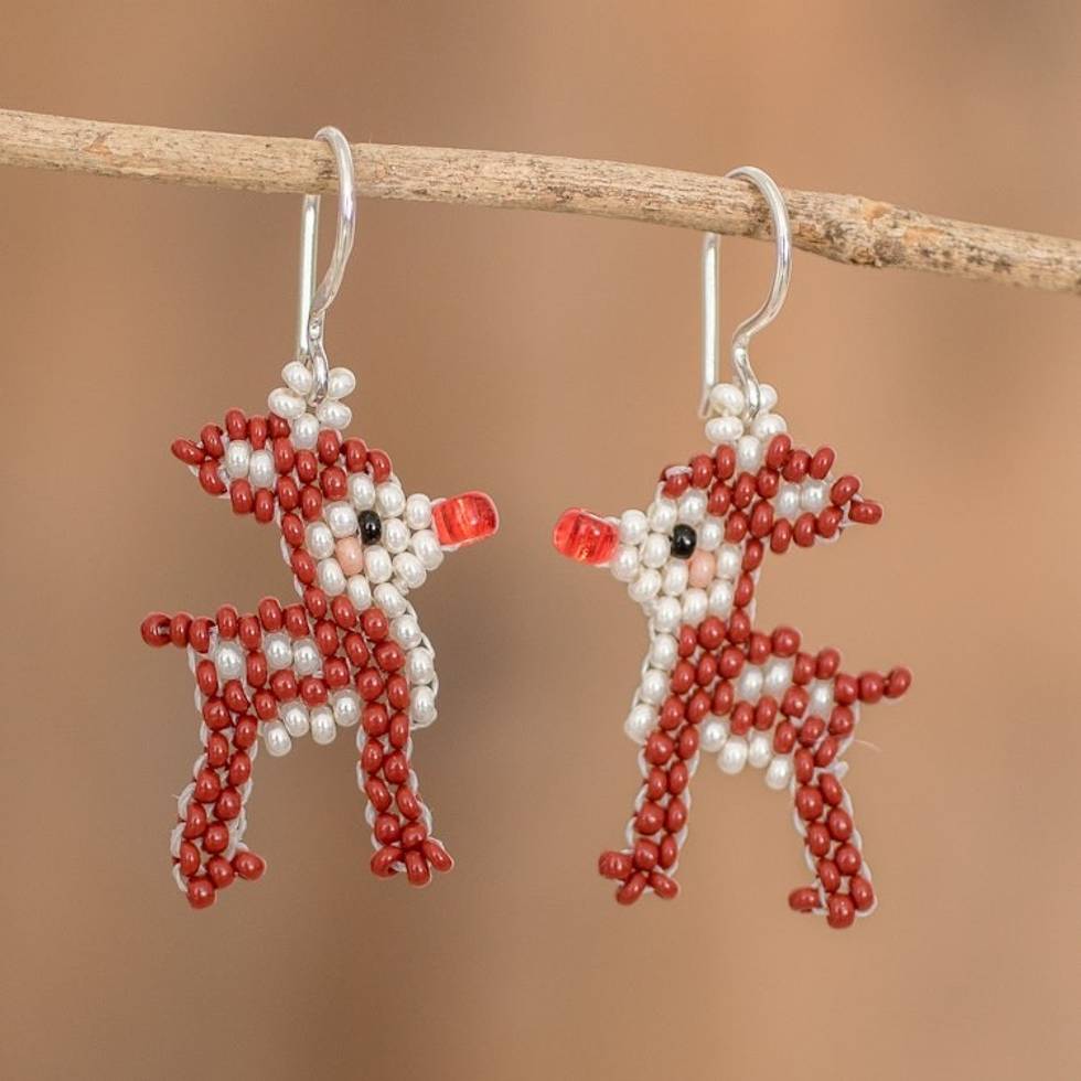 Handmade Glass Beaded Rudolph The Reindeer Dangle Earrings 'The Red-Nosed Reindeer' Item ID: 2669933097
