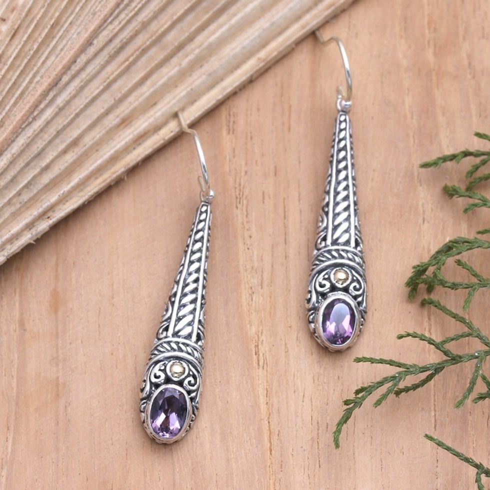 Handmade Gold-Accented Amethyst Dangle Earrings 'Through the Flames' Item ID: 2669887202