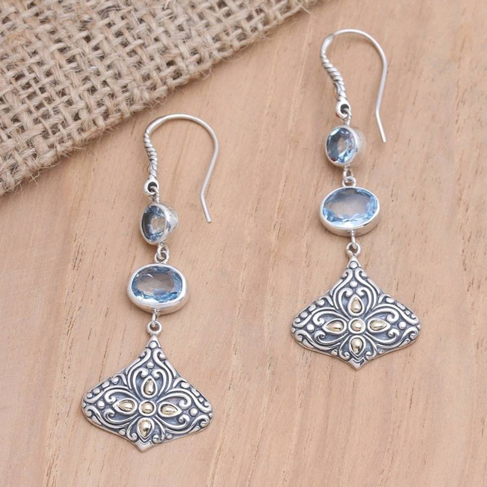 Handmade Gold-Accented Blue Topaz Earrings 'Lotus Kiss in Blue' Item ID: 2671747213