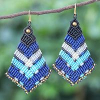 Handmade Gold-Accented Macrame Earrings 'Blue Boho' Item ID: 2669926217