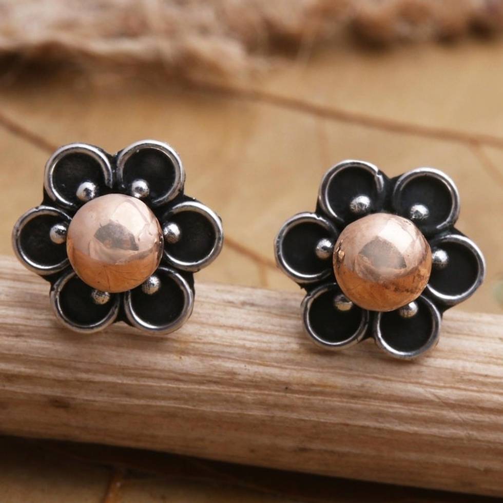 Handmade Gold-Accented Sterling Silver Stud Earrings 'Golden Stamen' Item ID: 2671571593