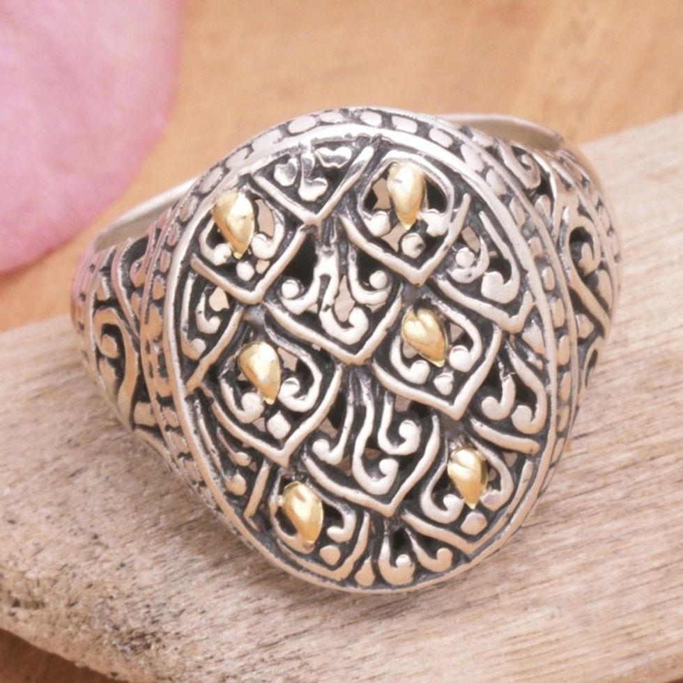 Handmade Gold-Accented Unisex Signet Ring 'Rice Terrace' Item ID: 2671748767