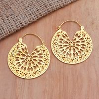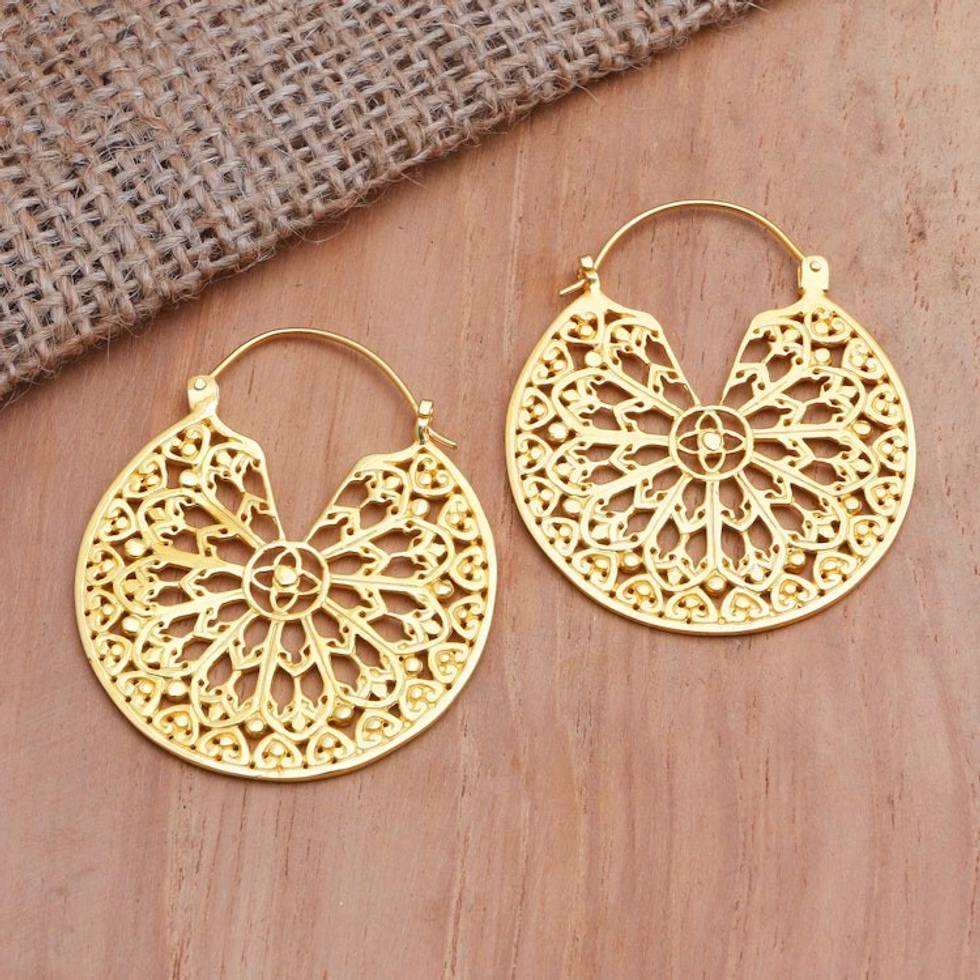 Handmade Gold-Plated Brass Hoop Earrings 'Divine in Orbit' Item ID: 2671747323