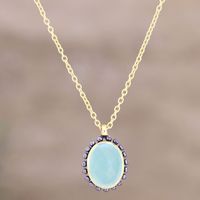 Handmade Gold-Plated Chalcedony Pendant Necklace 'Aqua Bloom' Item ID: 2671787324