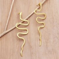 Handmade Gold-Plated Drop Earrings with Snake Motif 'Rattlesnake Rumble' Item ID: 2669921901