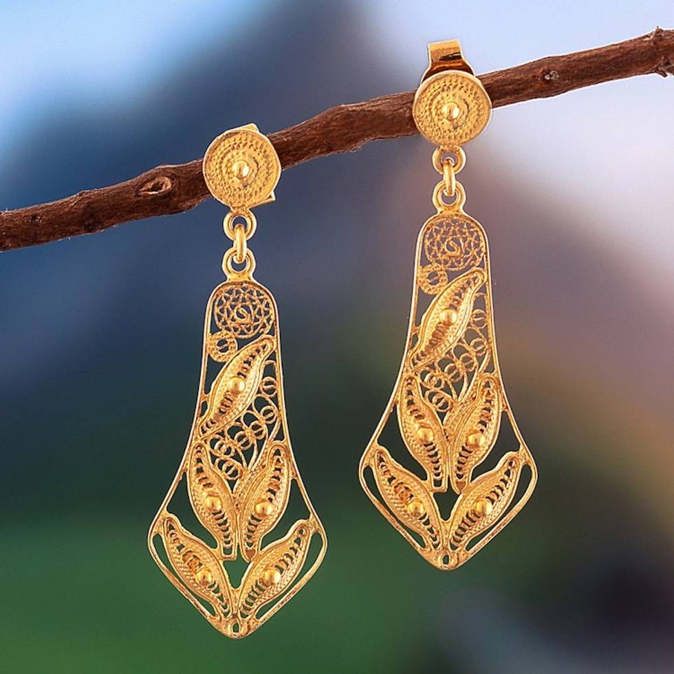 Handmade Gold Plated Filigree Earrings from Peru 'Bells' Item ID: 2671691341