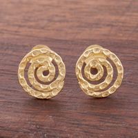 Handmade Gold Plated Sterling Silver Button Earrings 'Andean Cosmos' Item ID: 2669919663