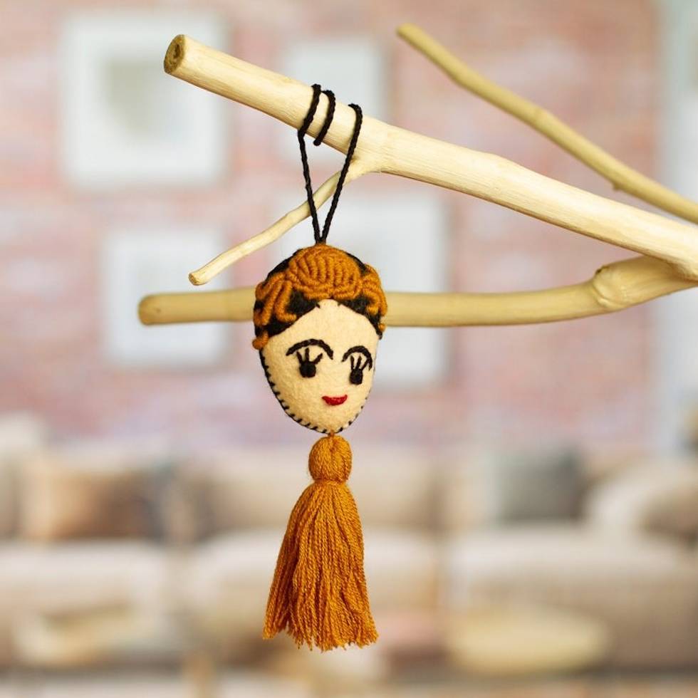 Handmade Golden Yellow Wool Frida Ornament 'Frida in Gold' Item ID: 2669898071