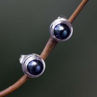 Handmade Gray Pearl Sterling Silver Earrings 'Eclipsed Moon' Item ID: 2671820830