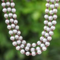 Handmade Grey Cultured Pearl and Garnet Strand Necklace 'Magic Pearl' Item ID: 2669928631