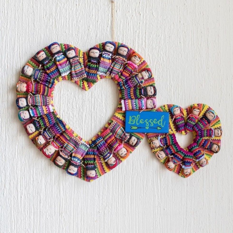 Handmade Guatemalan Worry Doll Double Heart Wreath 'Hearts are Blessed' Item ID: 2671776874