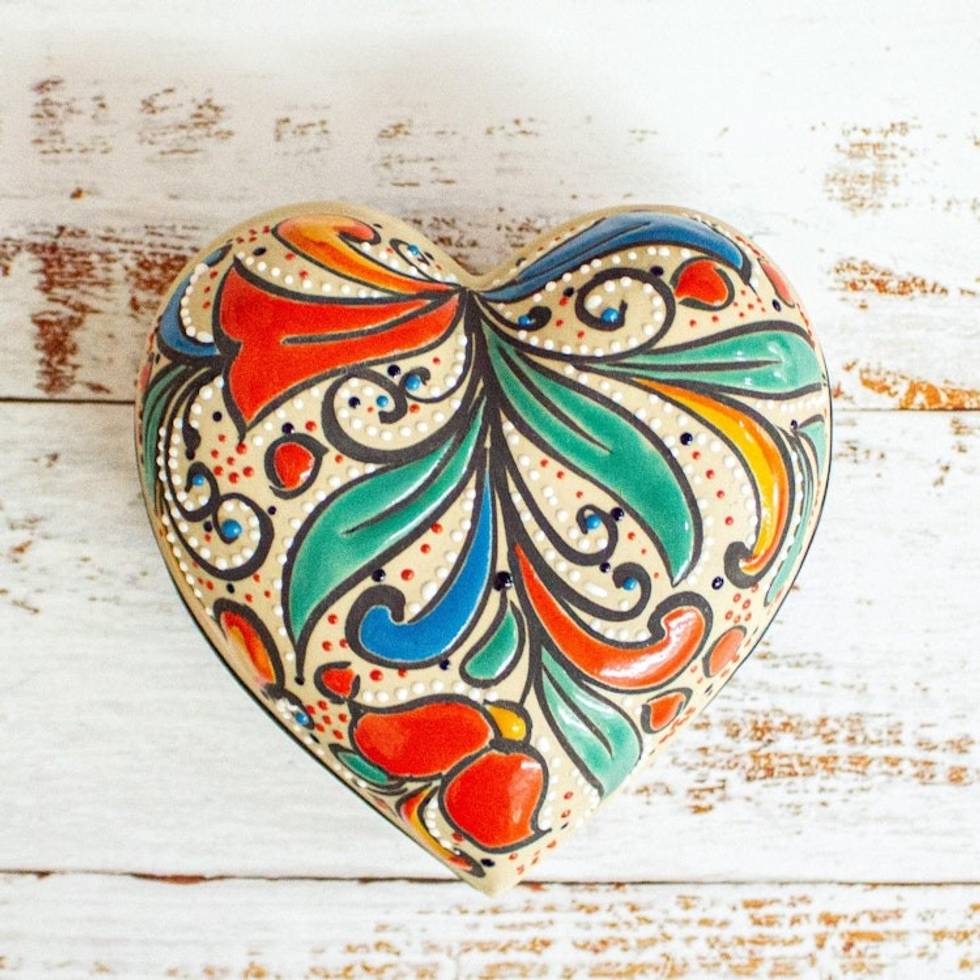 Handmade Heart Shaped Ceramic Jewelry Box 'Flourishing Heart' Item ID: 2669926747