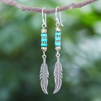 Handmade Hematite and Sterling Silver Dangle Earrings 'Sea Feathers' Item ID: 2676650367
