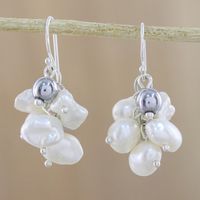 Handmade Hematite Cultured Freshwater Pearl Dangle Earrings 'Harmonious Pearl' Item ID: 2671801342