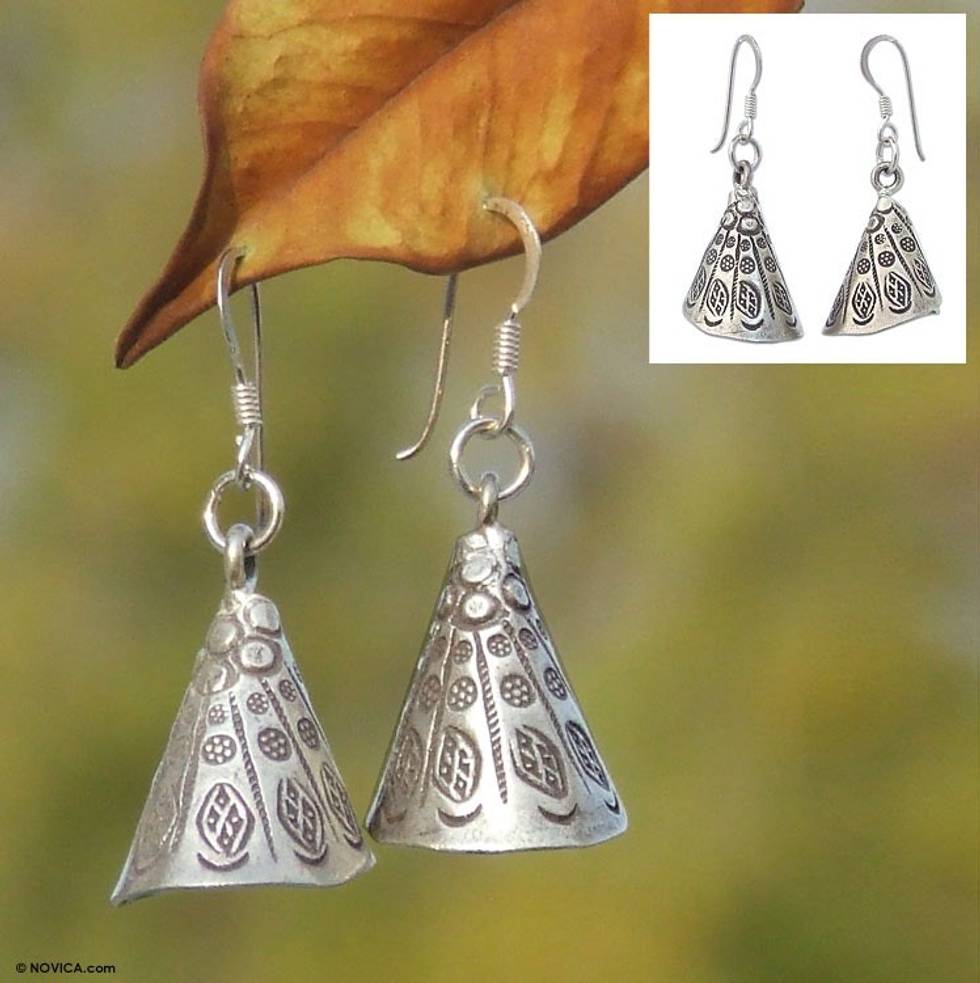 Handmade Hill Tribe 950 Silver Dangle Earrings 'Hill Tribe Bell' Item ID: 2671803081