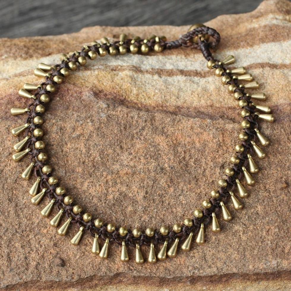 Handmade Hill Tribe Brass Beaded Anklet 'Sweet Charm' Item ID: 2669930672