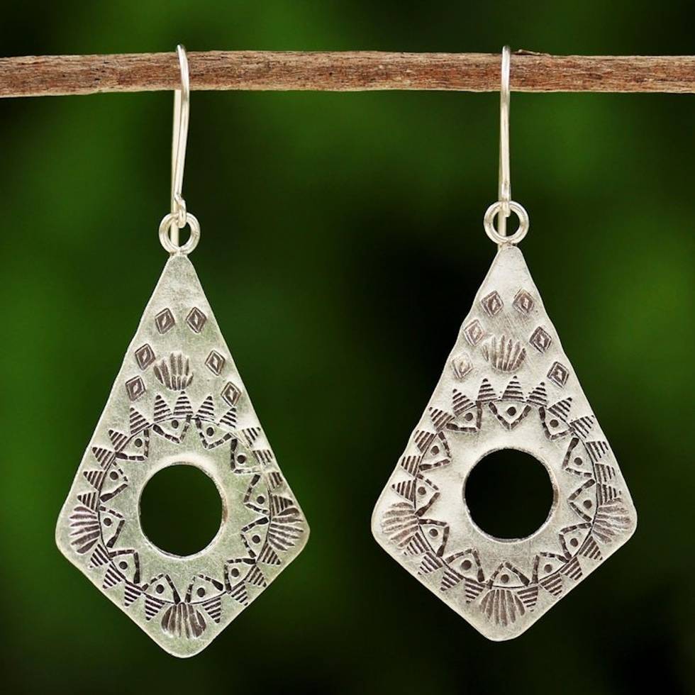 Handmade Hill Tribe Silver Dangle Earrings from Thailand 'Thai Promise' Item ID: 2671801401