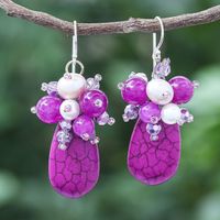 Handmade Howlite and Cultured Pearl Dangle Earrings 'Space Candy in Fuchsia' Item ID: 2671641324