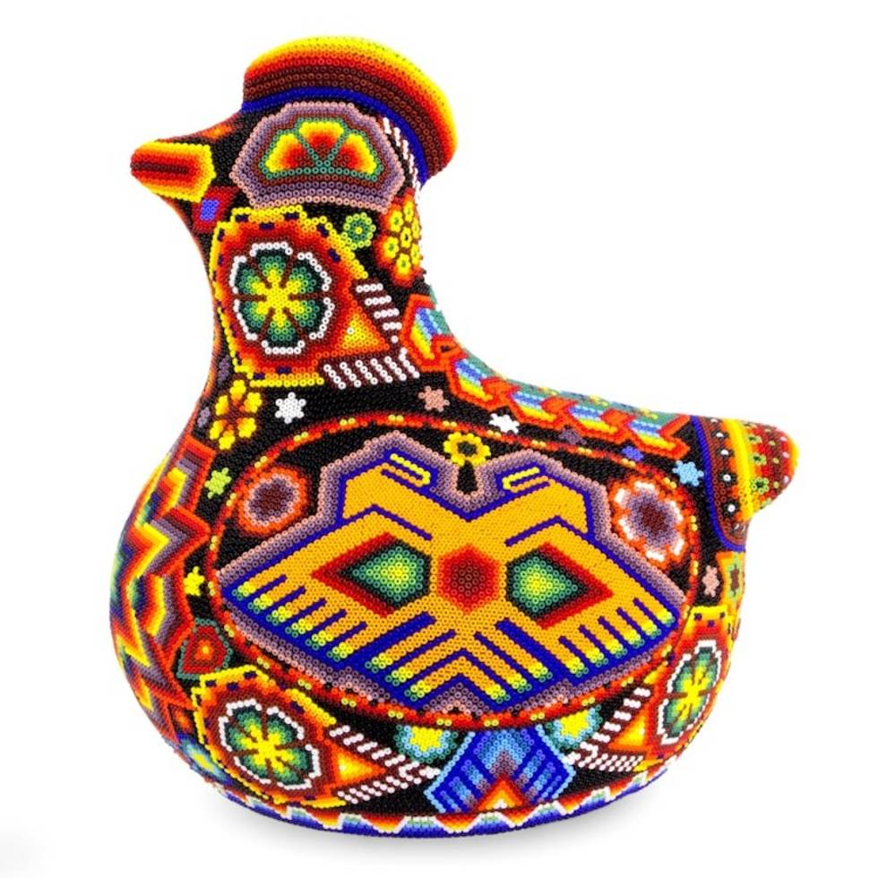 Handmade Huichol Folk Art Beadwork Bird Sculpture 'Happy Huichol Hen' Item ID: 2669890872