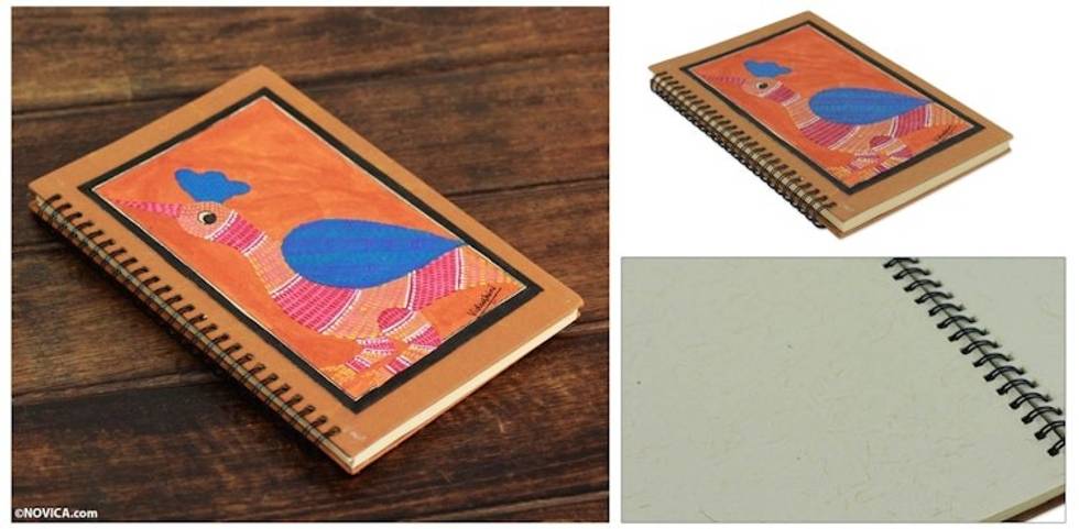 Handmade India Gond Tribal Folk Art Journal with Rooster 'Gond Rooster' Item ID: 2671794805