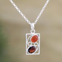 Handmade Indian Garnet and Carnelian Pendant Necklace 'Best Mates in Red' Item ID: 2669944307