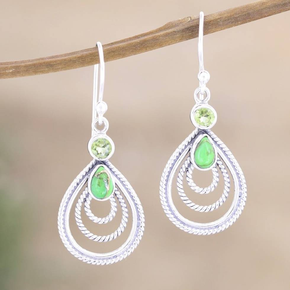 Handmade Indian Peridot and Sterling Silver Dangle Earrings 'Radiate in Green' Item ID: 2671788034