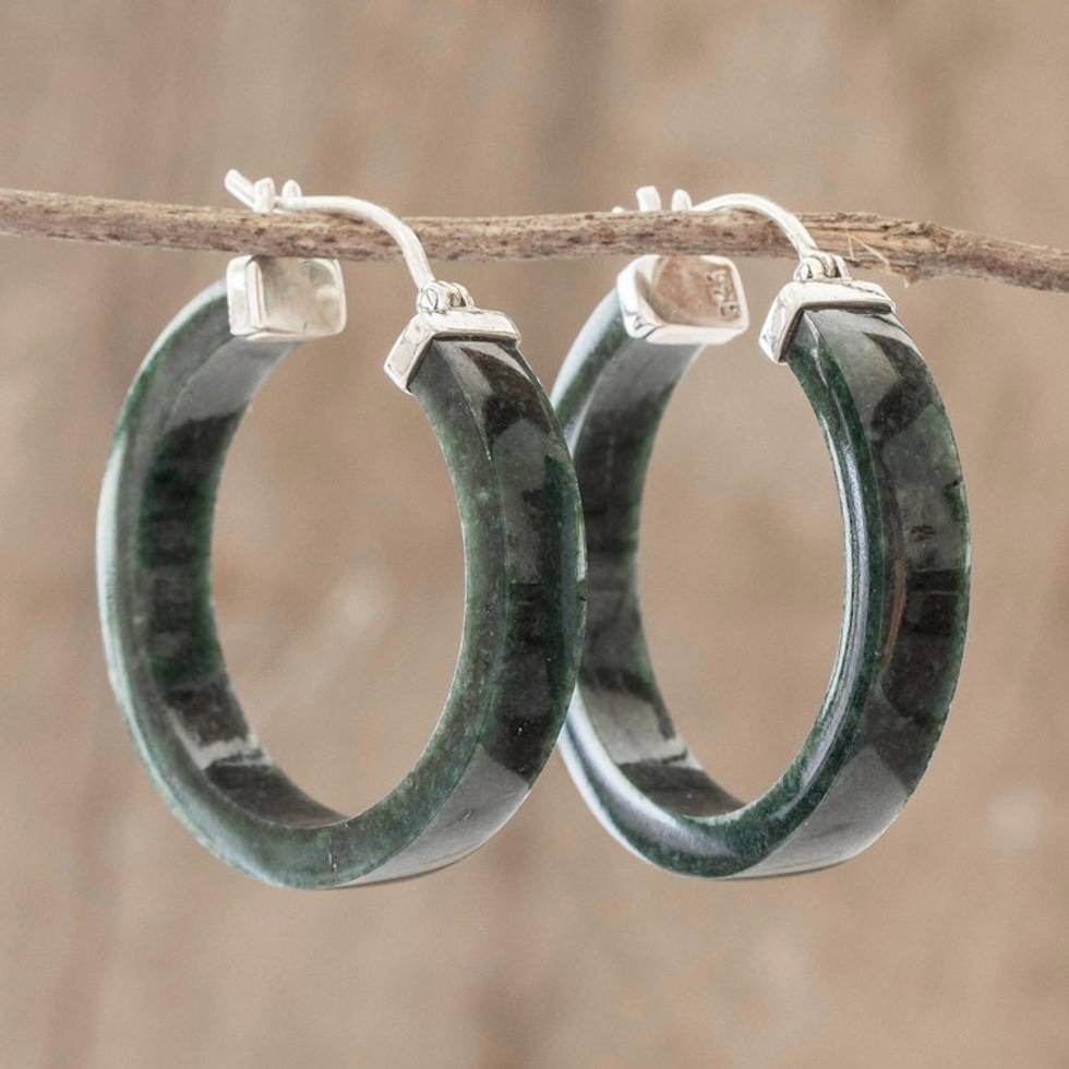 Handmade Jade Hoop Earrings 'Synchronicity in Dark Green' Item ID: 2671777172
