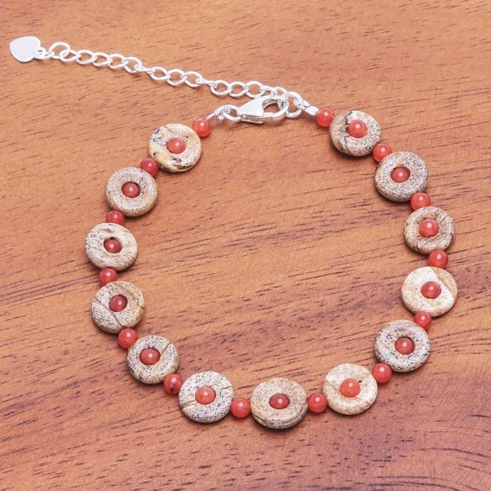 Handmade Jasper and Carnelian Beaded Bracelet 'Evening Sun' Item ID: 2671799633