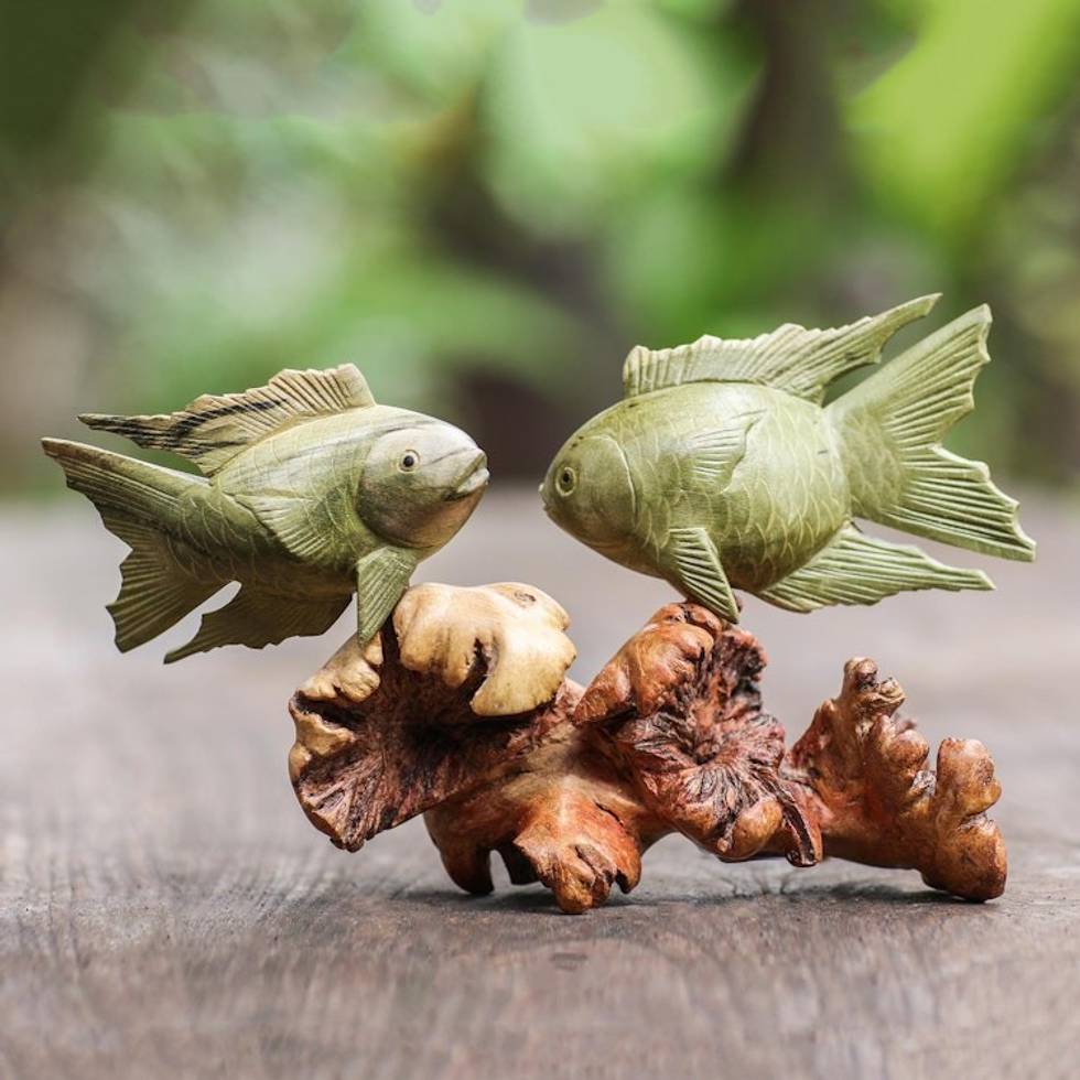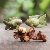 Handmade Jempinis Wood Koi Fish Sculpture 'Koi Fish Couple' Item ID: 2669910059