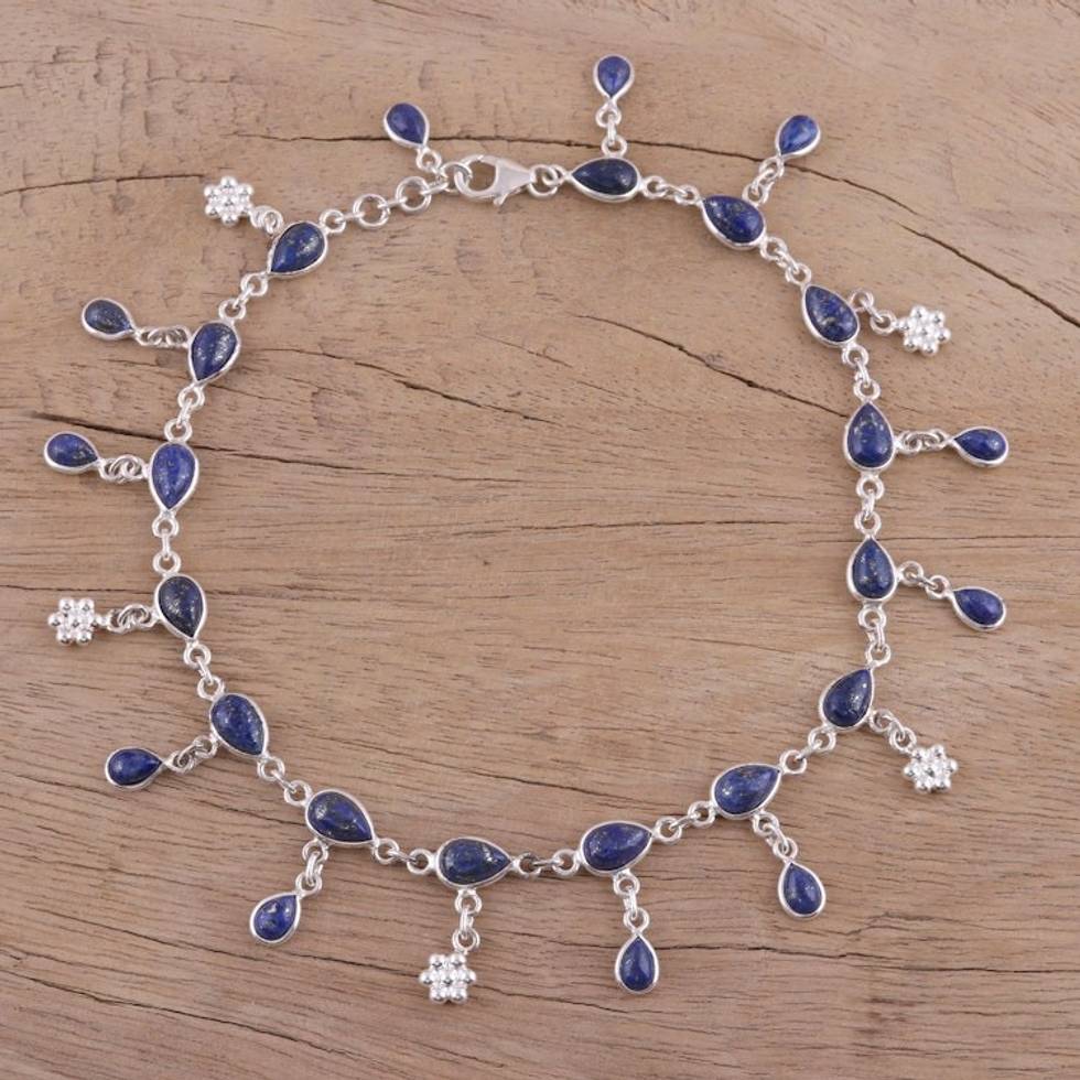 Handmade Lapis Lazuli and Sterling Silver Anklet from India 'Tidal Luster' Item ID: 2669956036