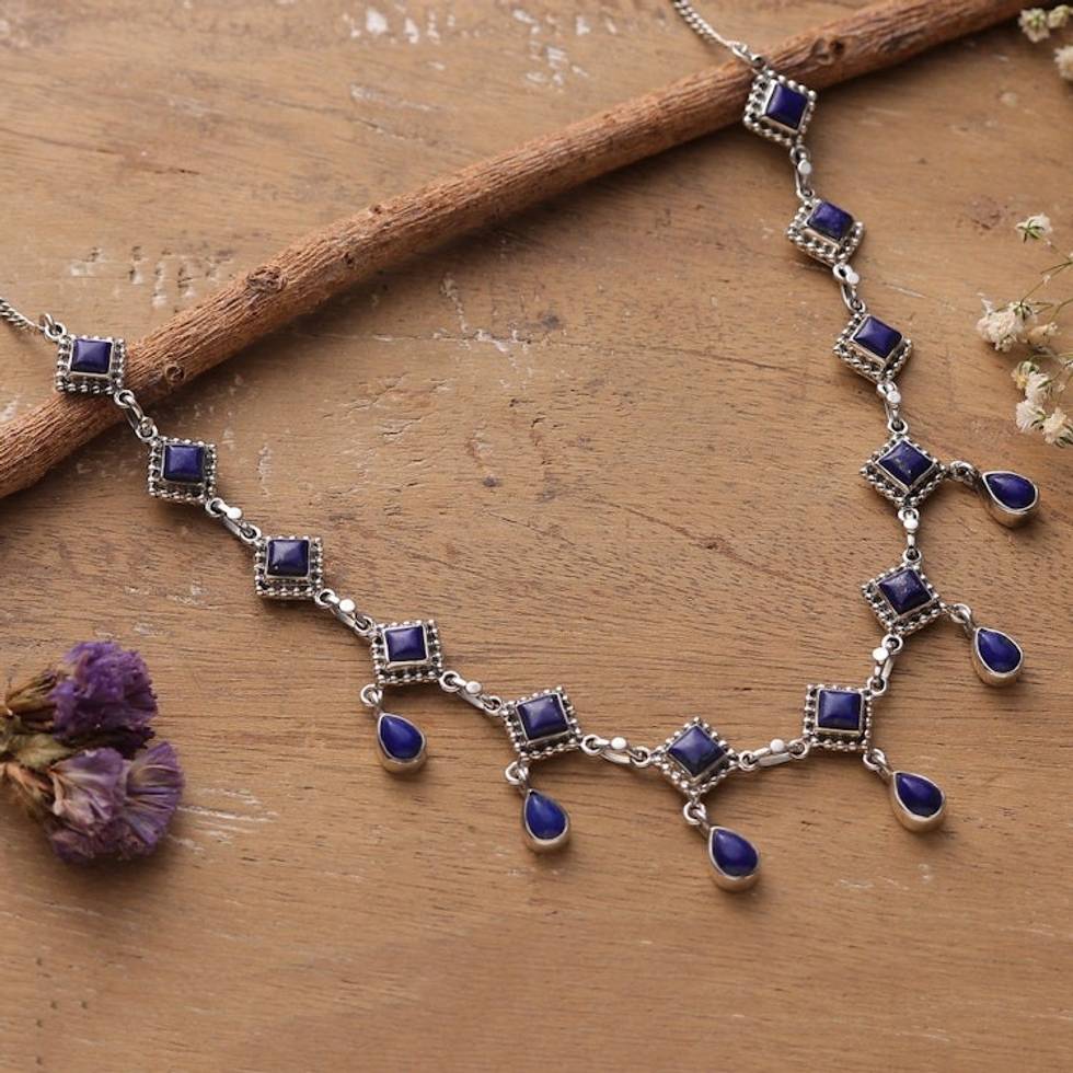 Handmade Lapis Lazuli and Sterling Silver Jewelry from India 'Queen of Diamonds' Item ID: 2671670288