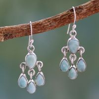Handmade Larimar and Sterling Silver Chandelier Earrings 'Sky Drops' Item ID: 2669925474