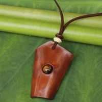 Handmade Leather Necklace with Tiger's Eye and Wood Beads 'Amulet' Item ID: 2671802173