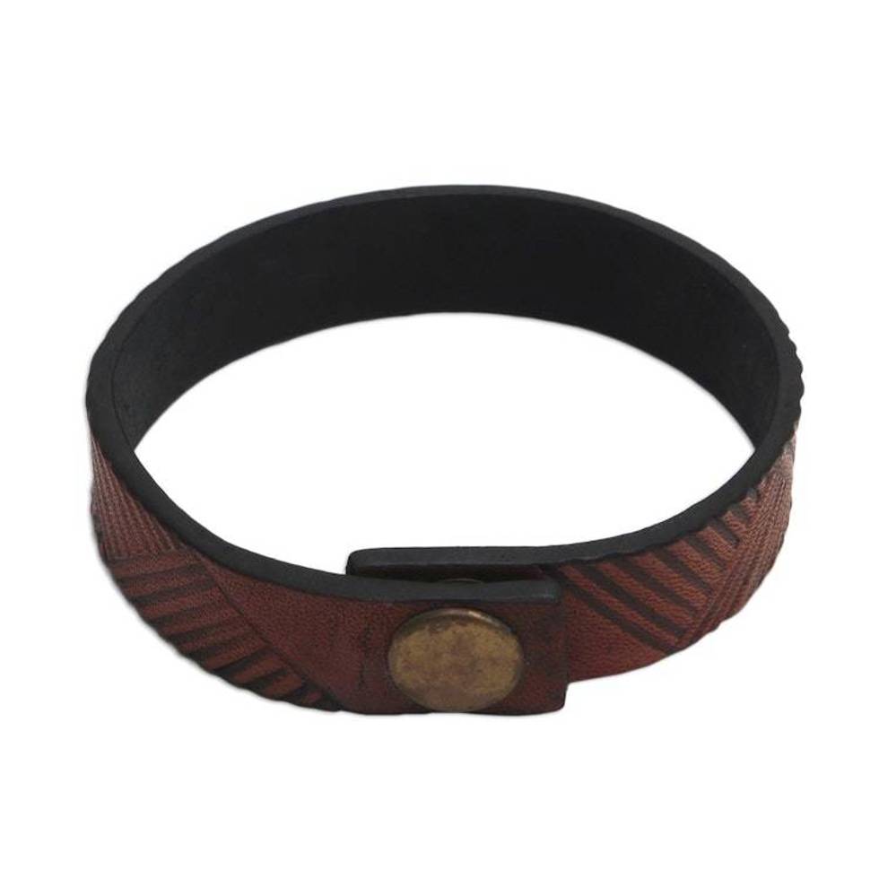 Handmade Leather Wristband Bracelet from Bali 'Brown Bedeg' Item ID: 2676657593