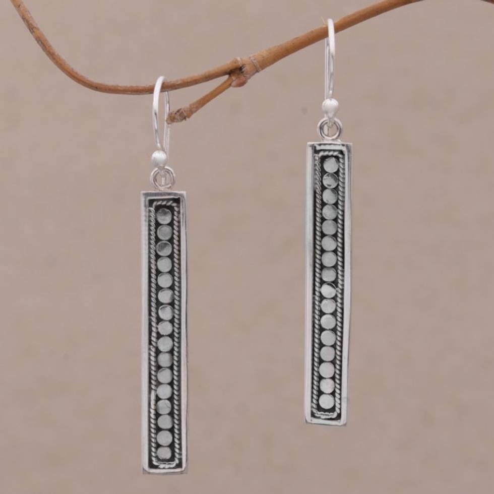 Handmade Long Sterling Silver Dangle Earrings from Bali 'Bold Hello' Item ID: 2669923268