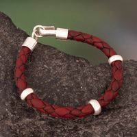 Handmade Men's Leather Braided Bracelet with Sterling Silver 'Bold Red' Item ID: 2676641595