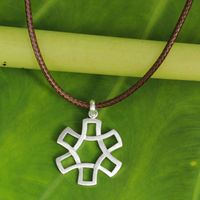 Handmade Men's Silver Pendant Necklace on Brown Cord 'The Wheel' Item ID: 2671802405