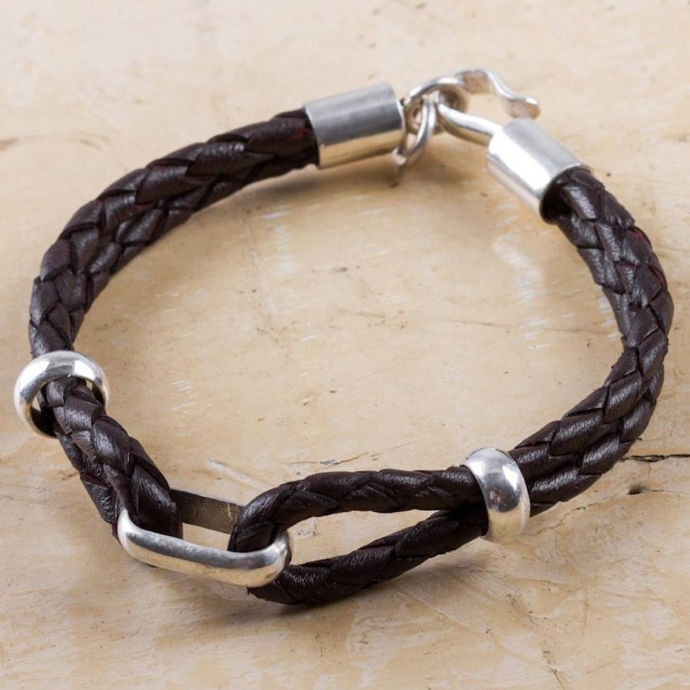 Handmade Men's Sterling Silver and Leather Bracelet 'Naturally' Item ID: 2671819275