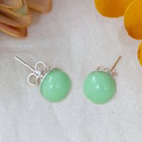 Handmade Mint Green Fused Glass Silver Round Stud Earrings 'Essential Mint' Item ID: 2676646921