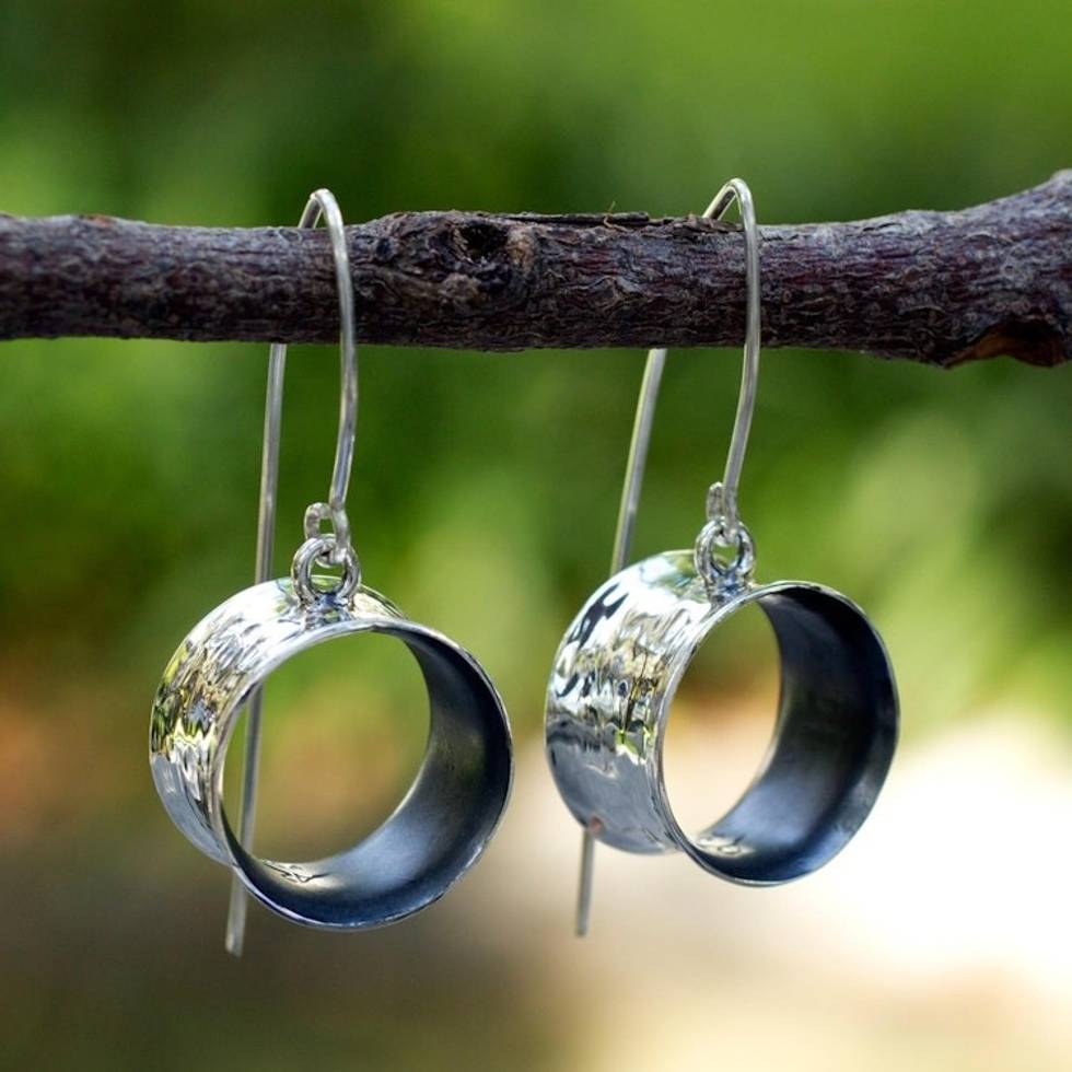 Handmade Modern Fine Silver Dangle Earrings 'Urban Moon' Item ID: 2671639258