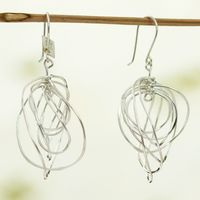 Handmade Modern Sterling Silver Dangle Earrings from Mexico 'Rays of Light' Item ID: 2671807691