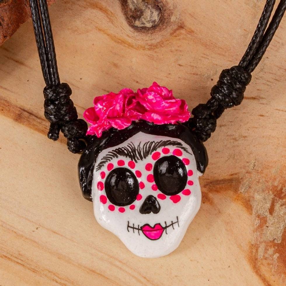 Handmade Molded Paper Skull Necklace 'Starry-Eyed Skull' Item ID: 2669926824