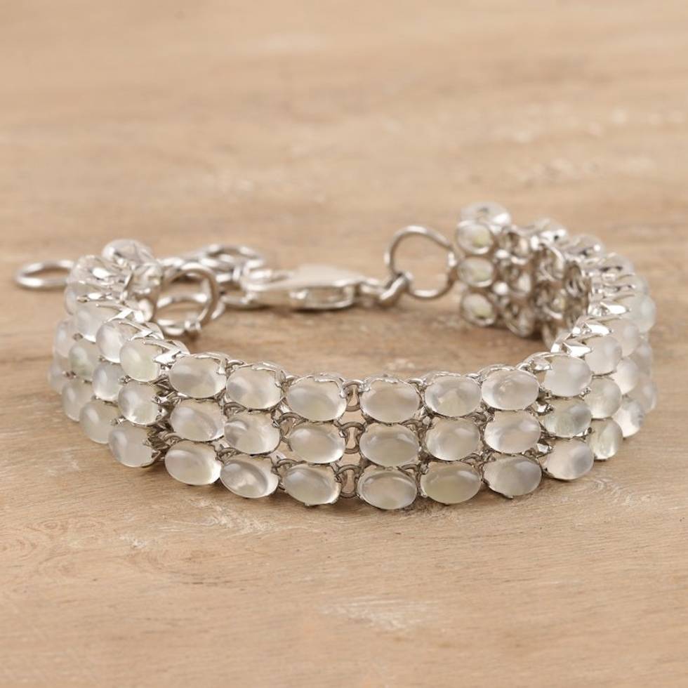 Handmade Moonstone and Sterling Silver Link Bracelet 'Moon Overhead' Item ID: 2669924450