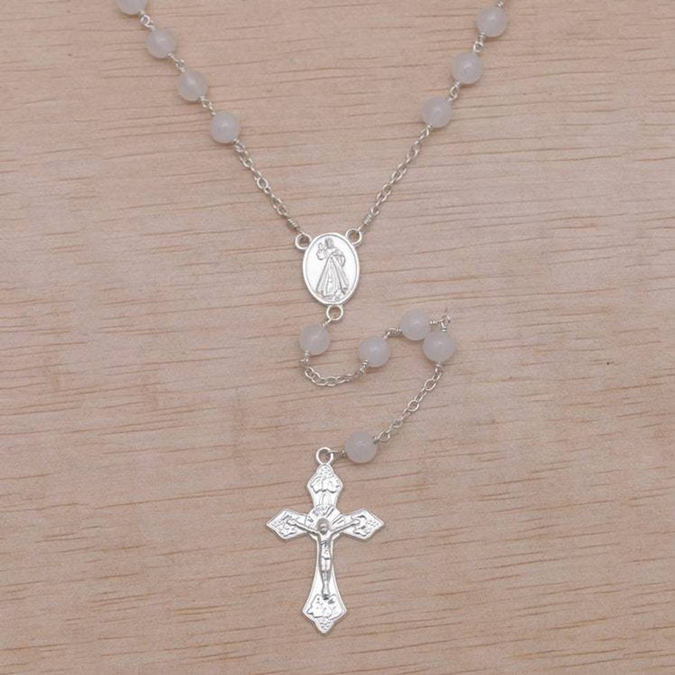 Handmade Moonstone and Sterling Silver Rosary Y-Necklace 'Blessed Mary' Item ID: 2676663305